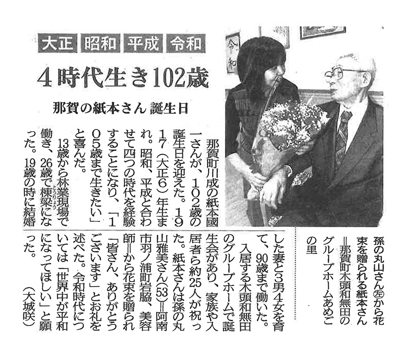 4時代生き102歳 | 徳島新聞