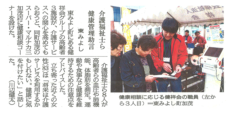 この記事は公開から1年以上経過しています メディア掲載記事 2019年12月3日(火) 介護福祉士ら健康管理助言 | 徳島新聞 ■徳島新聞(2019年12月3日掲載) [記事公開日]2019/12/03(火) [最終更新日]2020/03/24(火) マリア・テレジア健祥会シェーンブルン健祥会たんぽぽ 介護福祉士ら健康管理助言 | 徳島新聞 新しい記事 笑いと介護 共通点説明 | 徳島新聞 古い記事 食の質の追求は永遠のテーマ 創意工夫を競い合う料理コンテスト開催 過去の記事へ