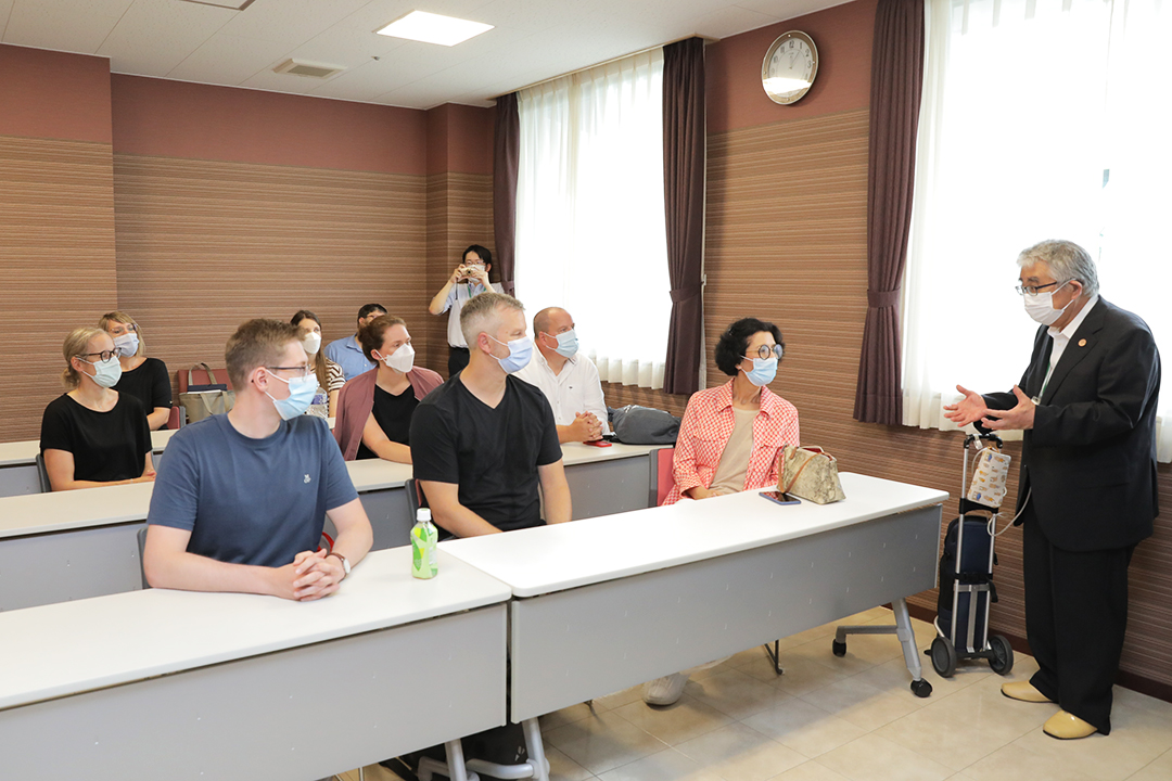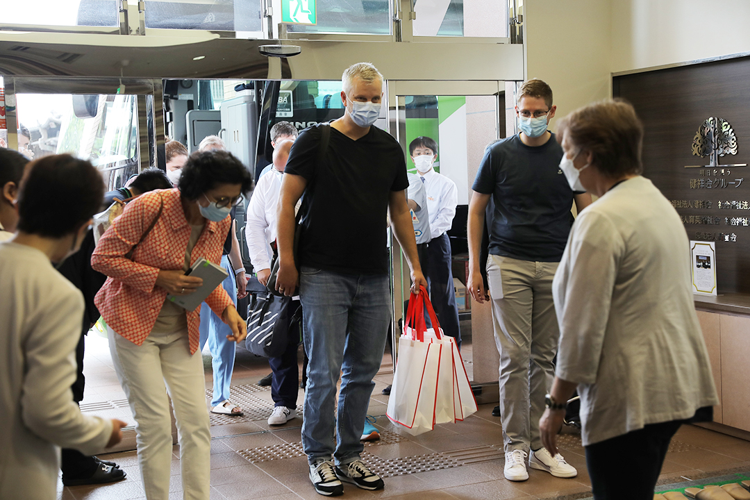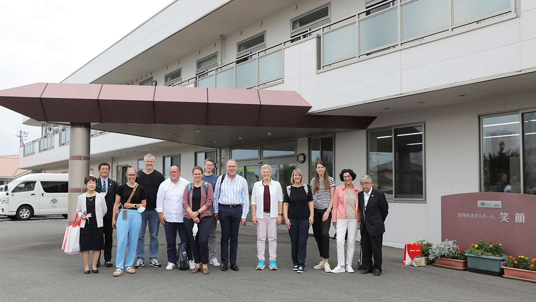 一行は、マネジメントアカデミー・ニーダーザクセンのダールマン博士を団長に、ゲッティンゲン大学病院と、ハノーファー医科大学病院などからの10名の皆さん。ダールマン博士は2017年に徳島県との友好交流提携10周年記念の視察団のメンバーとして特別養護老人ホームハイジを訪れてくださっており(http://kenshokai.and-support-contact.info/news/4048/)、「6年を経てどう進化しているのか楽しみです」と挨拶してくださいました。