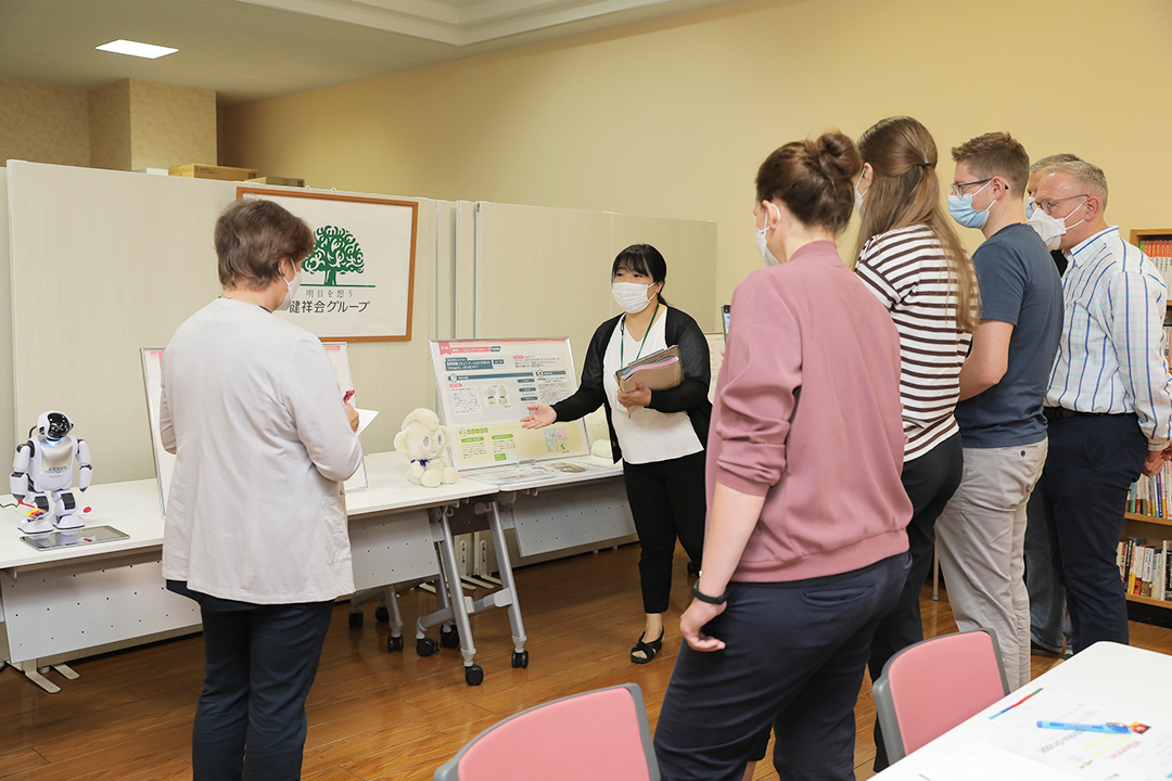 徳島県と「ドイツ・マネジメントアカデミー・ニーダーザクセン」との交流事業として7月2日から来県しているニーダーザクセン州の看護訪問団が、介護現場でのロボット活用の現状の視察のために3日、健祥会グループを訪れました。