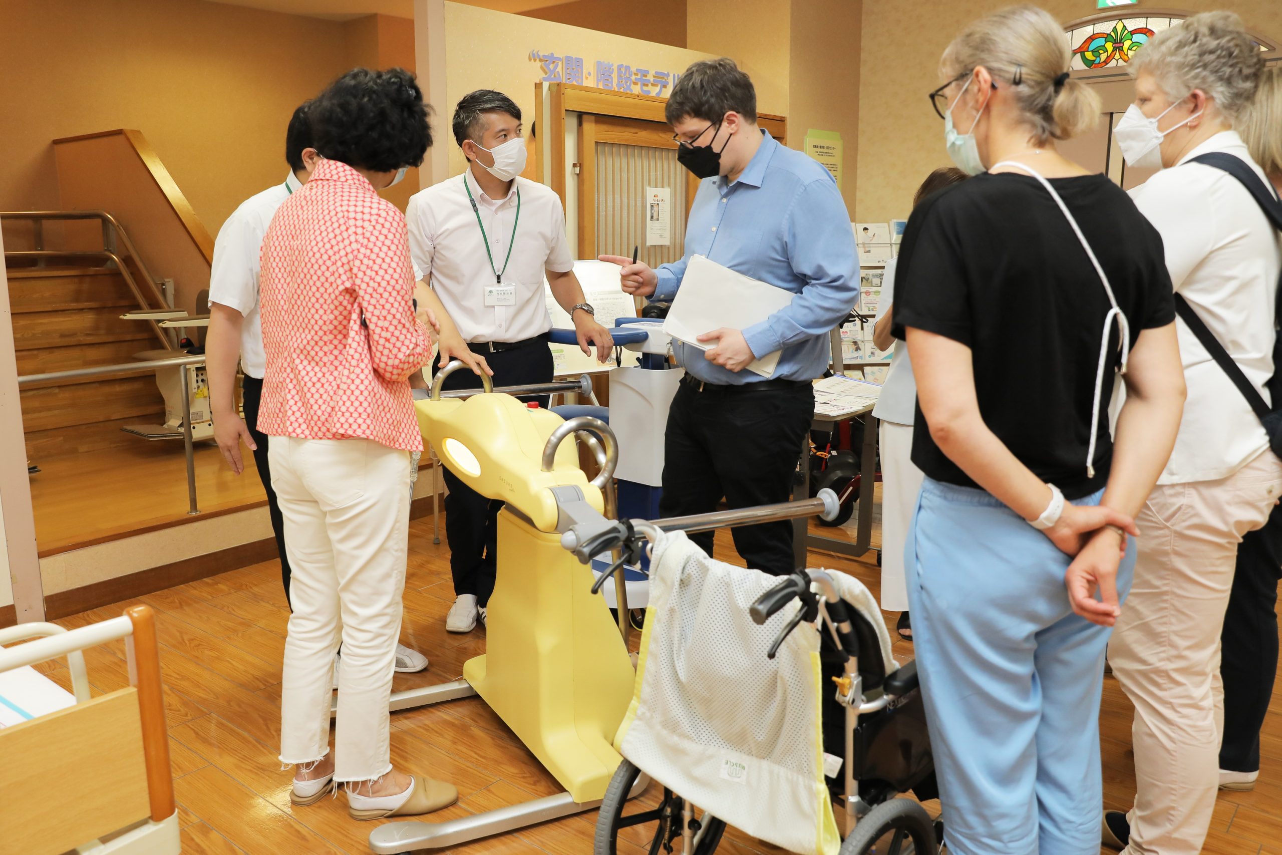 徳島県と「ドイツ・マネジメントアカデミー・ニーダーザクセン」との交流事業として7月2日から来県しているニーダーザクセン州の看護訪問団が、介護現場でのロボット活用の現状の視察のために3日、健祥会グループを訪れました。
