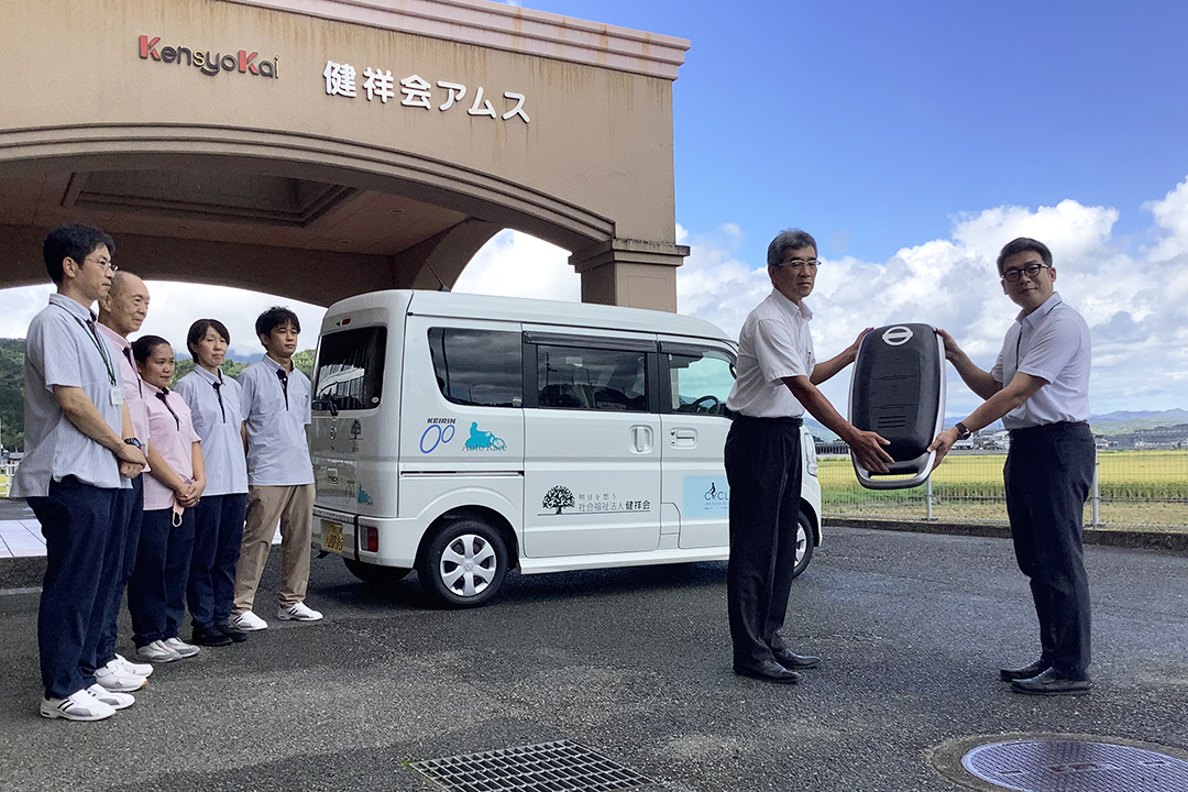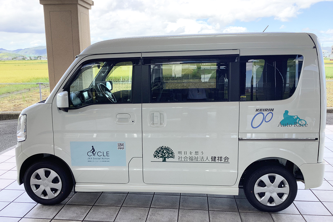 公営の競輪とオートレースを統括する公益財団法人JKA は、売上金の一部で社会的課題の解決に取り組む活動を支援しています。さまざまな補助事業の中の「幸せに暮らせる社会を創るための活動:車両・機器等の整備」という部門で、小規模多機能ホーム健祥会テルダムが採択いただき、その助成金でスロープ式軽自動車を購入。このほど納車されました。