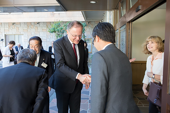 一行は、ヴァイル首相、オネー国務長官、鳴門市の姉妹都市であるリューネブルグ市メドケ市長のほか、州議員、企業や大学関係者など35名。介護現場でのマッスルスーツの使用状況に興味を示され、忙しい日程の中に組み込まれたものです。