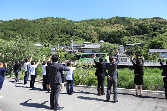 社会福祉法人健祥会は、1997年にドイツ・マンハイム市と連携協定を結ぶとともに、健祥会バーデン、健祥会バイエルンなど、ドイツの都市の名前を施設名称にさせていただいています。また、徳島健祥会福祉専門学校の海外研修旅行でも例年ドイツを訪れるなど、長年交流を育んできました。いま、介護保険制度のお手本となったドイツの皆さんから視察いただけるとは大変光栄な思いで、次の施設地へ向かう一行を見送りました。