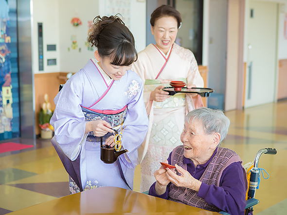 健祥会グループ各地の各施設では、職員の晴れ着姿に利用者様も晴れの笑顔で、穏やかな新年の朝を迎えました。利用者の皆様が健康で、笑顔で過ごせますようにとの願いを込めて、お屠蘇とおせち料理で言祝ぐ新しい年。本年もどうぞよろしくお願いいたします。