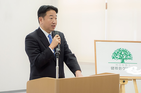 次に職環境のこと。介護現場の離職の理由の一番は人間関係です。上司や同僚である前に、まず人として心通わせ、助け合ってください。そして、働き方改革を言葉で終わらせるのでなく、仕組みから画期的に変えいくには、まずトップが変わらねばなりません。私自身が古い感覚を捨てることで新しい健祥会を創っていこうと決意していますので、皆さんからもどんどん提言をください。