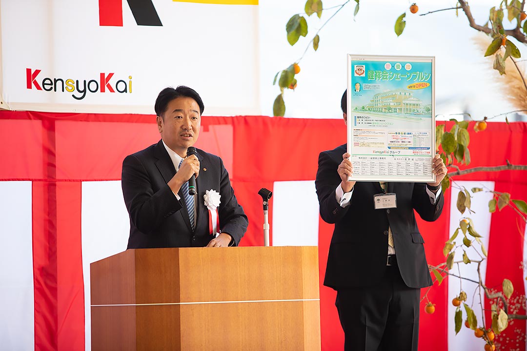 本日、川原副町長はじめ、多くの皆様のご出席をいただき、記念の式典が開催できますことを嬉しくありがたく思います。来賓の皆様、利用者様、地域の皆様には、長年、多大なご協力ご指導をいただいておりますことに心より感謝申し上げます。