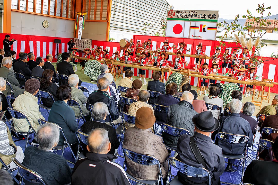 東みよし町長代理として副町長 川原誠男 様、東みよし町議会議長 坂本正一 様より、過分なご祝辞をいただいた後、来賓の皆様をご紹介し、職員手作りのメモリアル DVDで20年の歩みを偲びました。足代小学校の皆さんが、東みよし町の無形民俗文化財である獅子舞いを熱演。可愛い舞いに、来賓の皆様も利用者様もニコニコ顔でした。皆様、ありがとうございました。