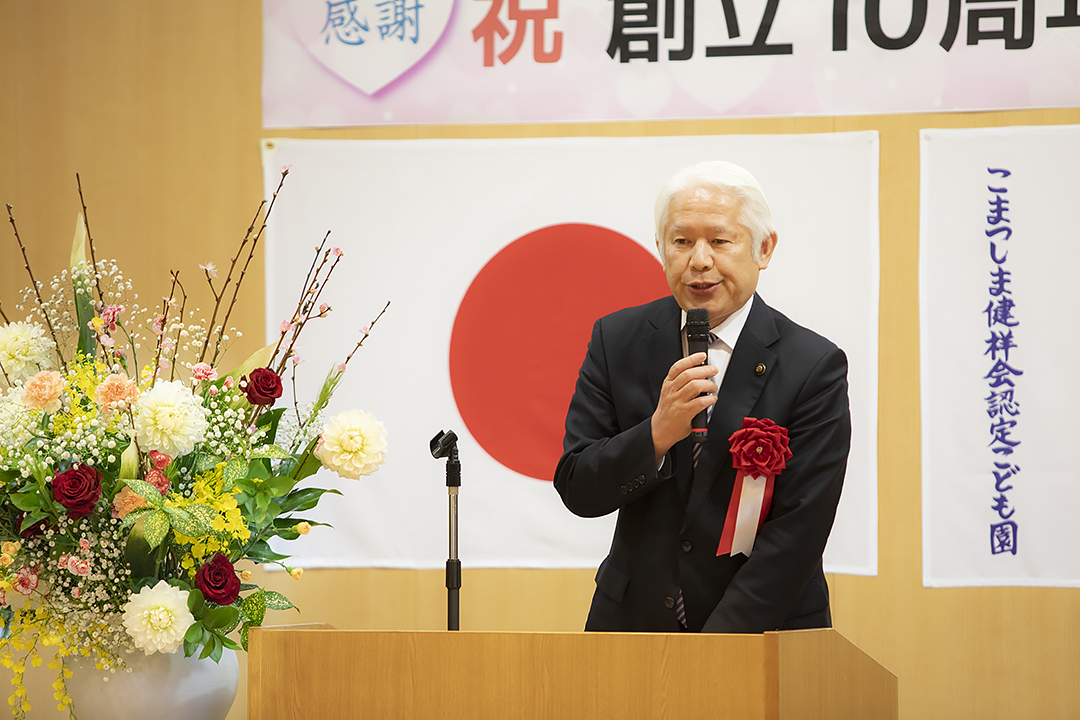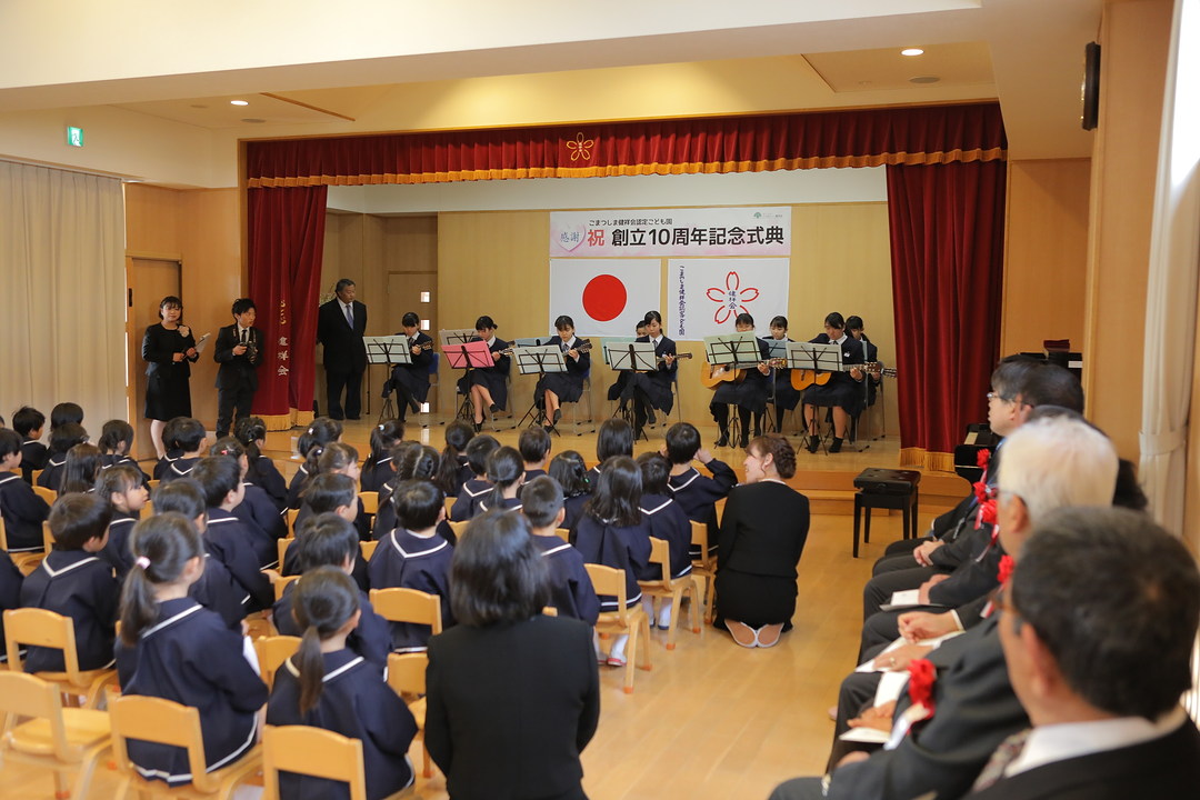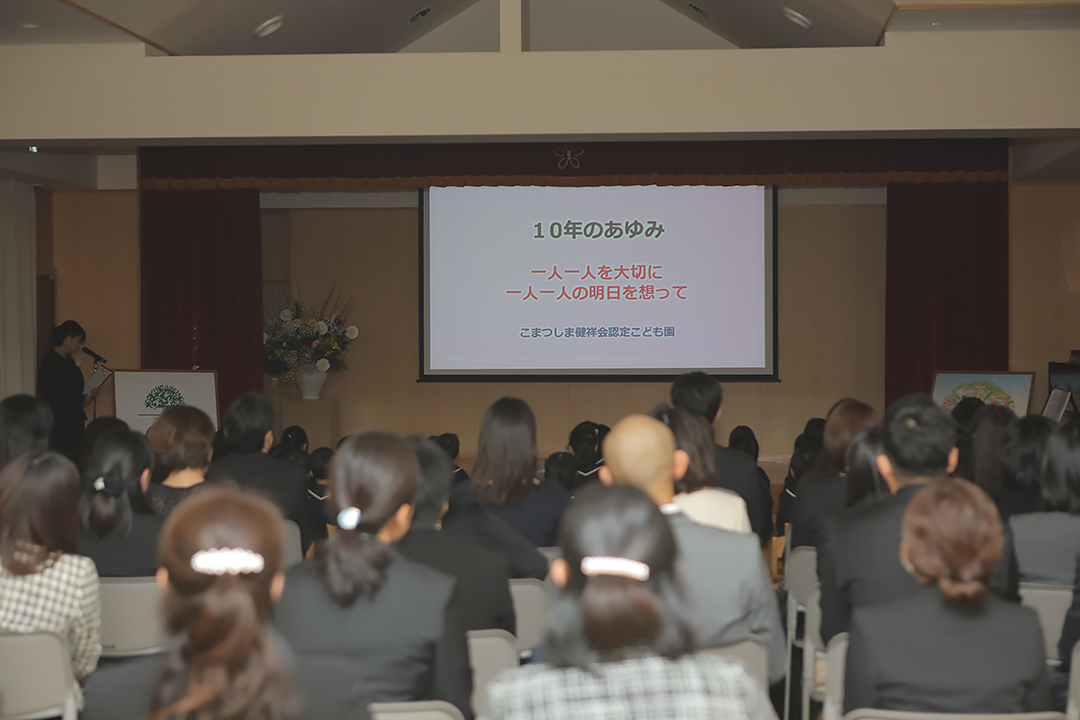 昨年10月25日、創立10周年を迎えたこまつしま健祥会認定こども園で、小松島市長をはじめとするご来賓の皆様、保護者の皆様をお迎えし、10周年を祝う記念式典が開催されました。
