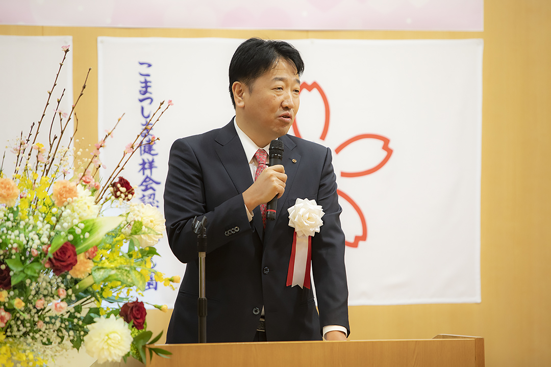 地域の皆様、特別教室の講師の方々、歴代後援会長様らたくさんのご来賓を代表して小松島市 濱田保徳市長が、「こまつしま健祥会認定こども園が、礼儀と感謝の体得、そして英語や音楽、体操教室など、豊かな教育を実践してくだっていることに大変感謝しています。保育料の無償化も実現の運びとなり、子育てしやすい社会になってきていると思いますが、小松島市としてもさらにしっかり子育てを応援してまいります」とご祝辞をくださいました。