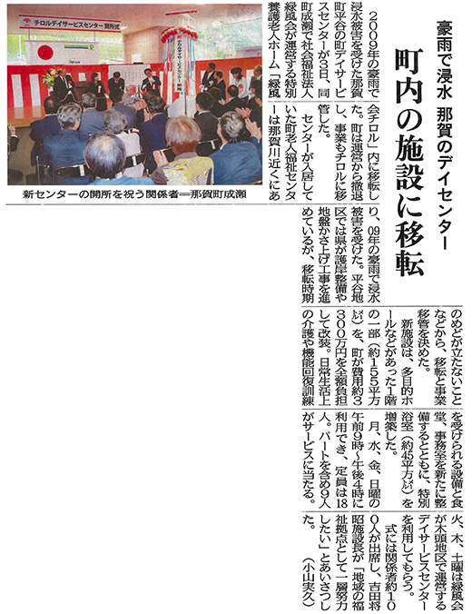 特別養護老人ホーム緑風会チロルにおいてすすめられていた増築工事が完了し、地域の皆様にご臨席いただいてチロルデイサービスセンターの開所式が執り行われました。