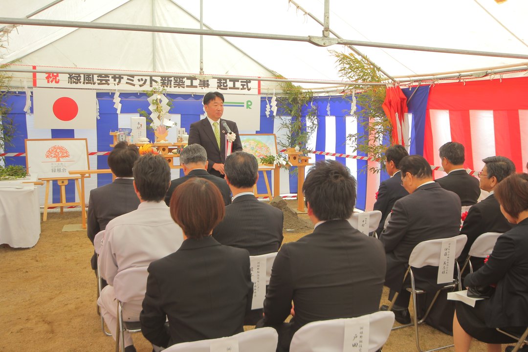 坂口町長からも「人口減少の進む那賀町ですが、4月の住民基本台帳の人口が3月を上回るといういいニュースもありました。とにかく定住人口を増やしたく、そのためにもこの寮の建設は嬉しい限りです。団塊の世代が後期高齢者になる2025年に向かって、高まる介護需要をお支えいただきますよう、緑風会の3施設には心から期待申しあげています」と過分なご挨拶をいただきました。