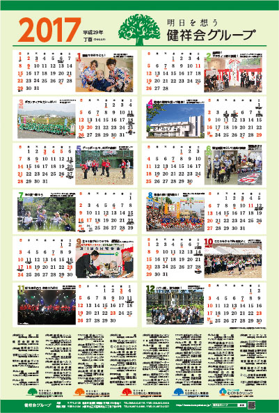 今年も健祥会のカレンダーが出来上がりました。健祥会グループの行事日程が掲載された便利なカレンダーです。ぜひ印刷してご利用ください。