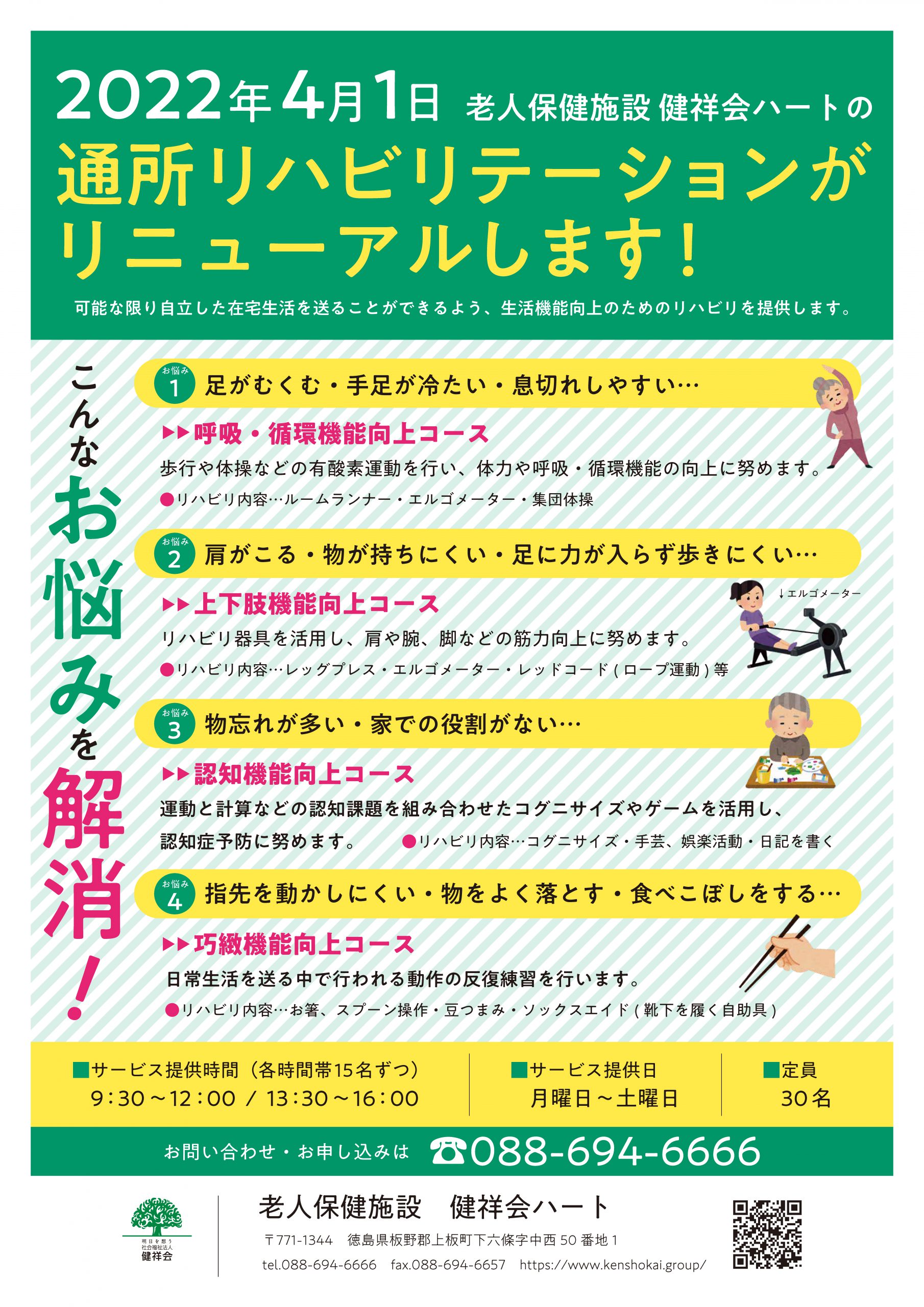 健祥会ハート「通所リハビリテーションがリニューアルしました!」