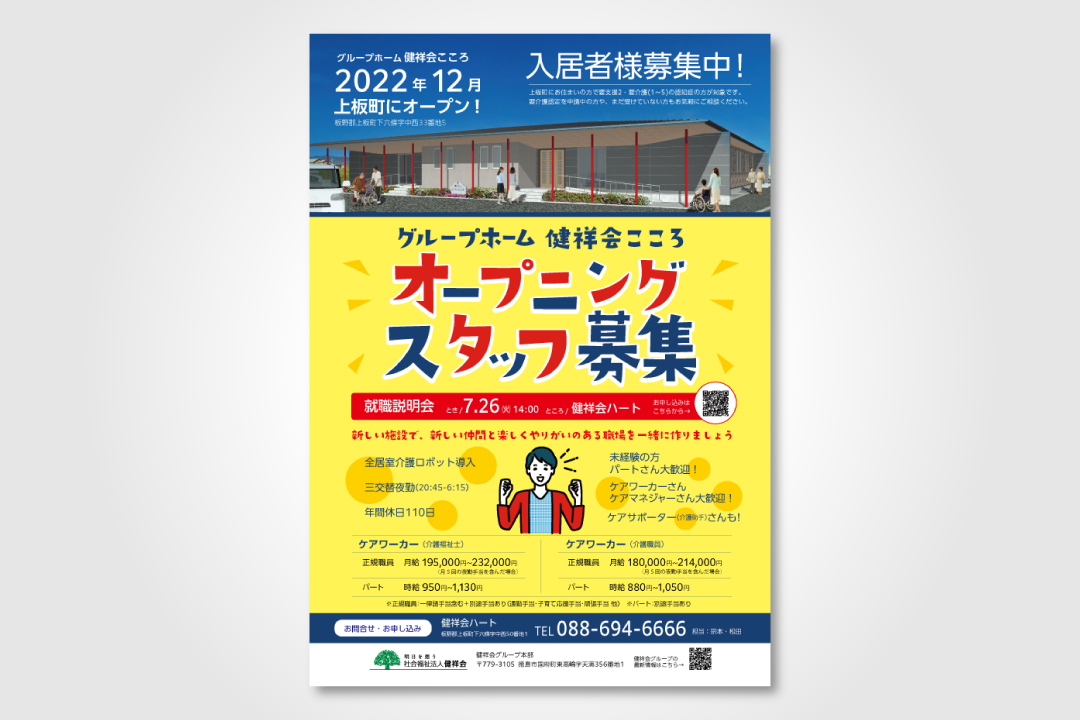 上板町に建設中のグループホーム健祥会こころのオープニングスタッフを募集します。
