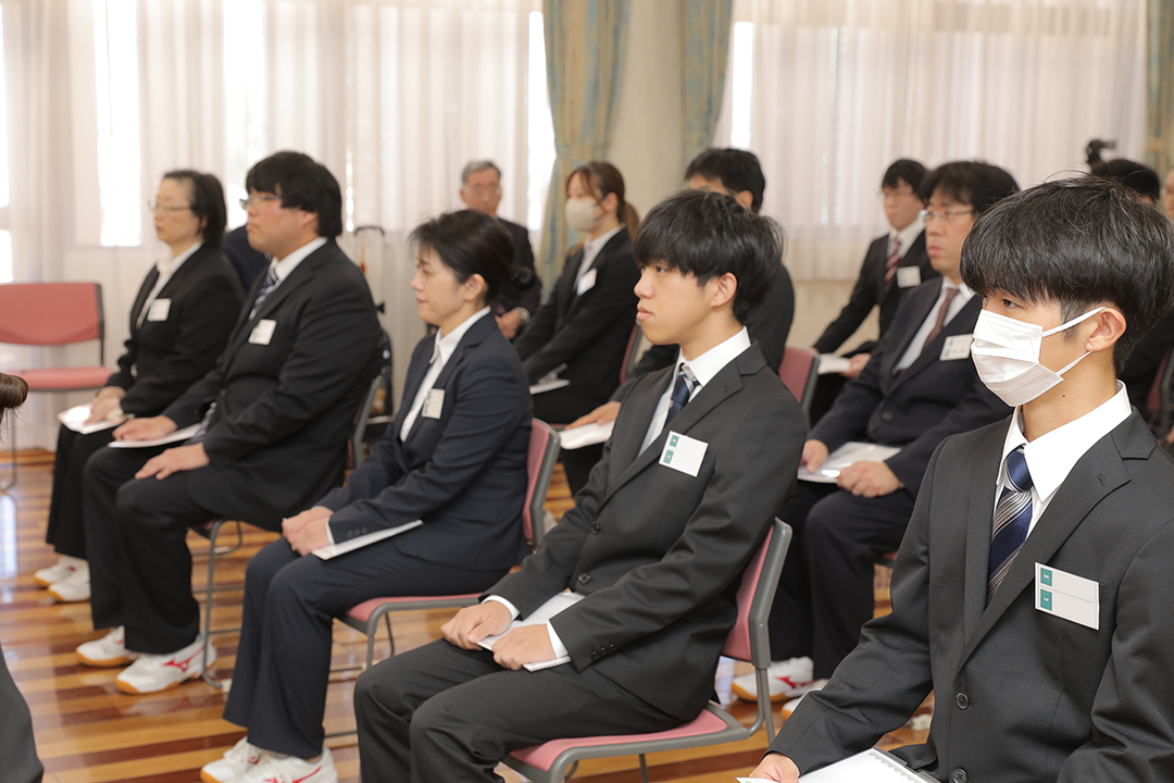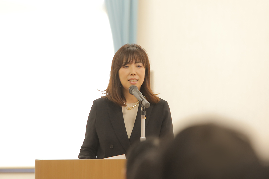 常務理事の言葉を受け、内定者の代表が「まだまだ未熟な私たちではありますが、介護福祉・教育保育への想いでは誰にも負けません。この想いをまっすぐに注ぎ、グループの発展に寄与できる人財をめざして精進していくことを、ここに誓います」と宣誓しました。