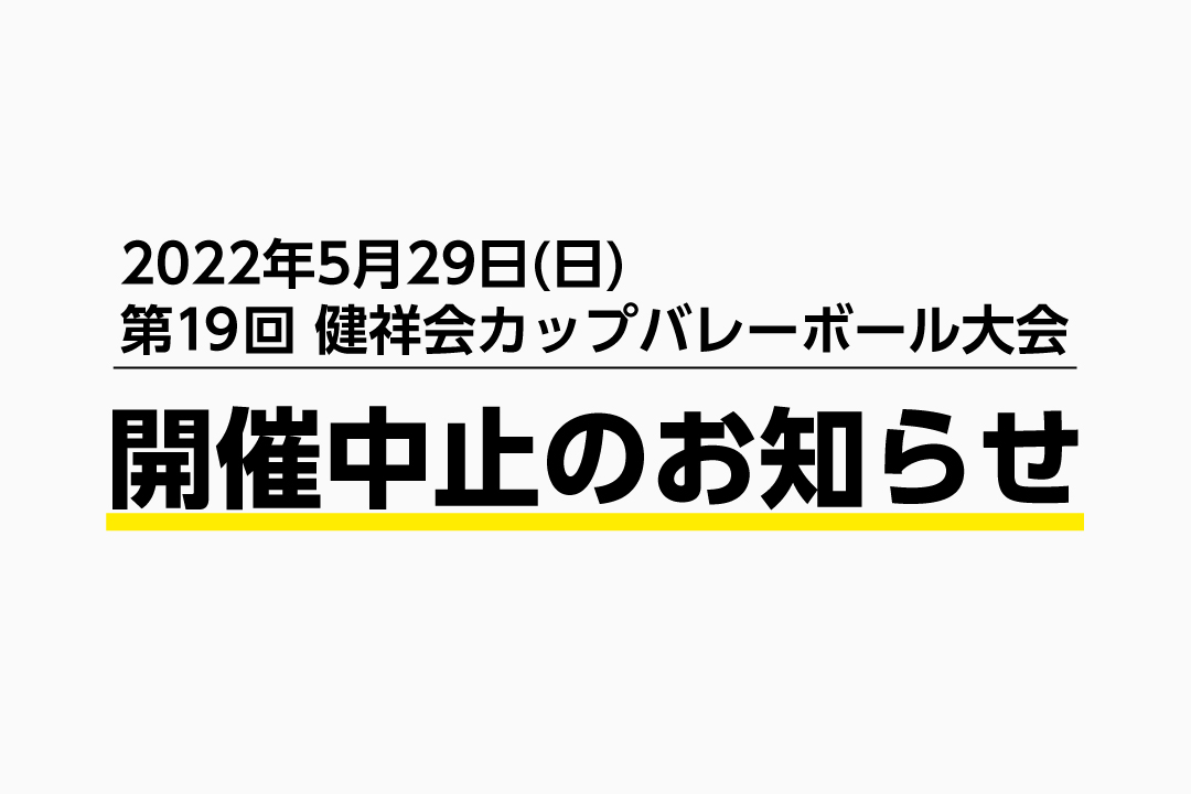 5月29日に開催を予定していた第19回健祥会カップバレーボール大会は、新型コロナウイルス感染症拡大防止のため、中止することといたしました。Withコロナを実践していくためにも3年ぶりの実施を模索しましたが、子どもの感染増加が続いていること、リスクの高くなる屋内競技であることからこの判断に至りました。