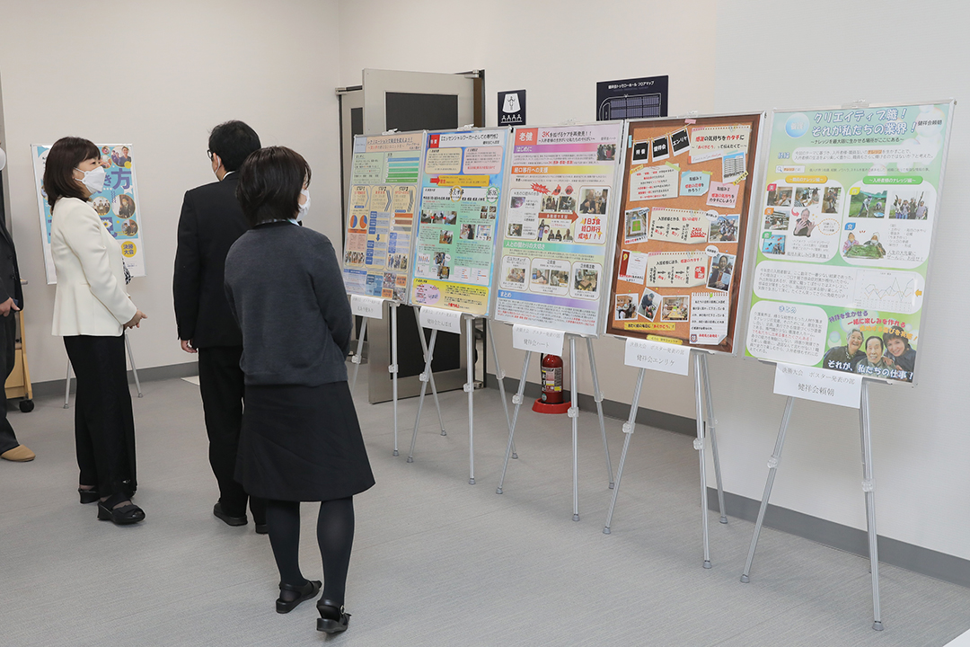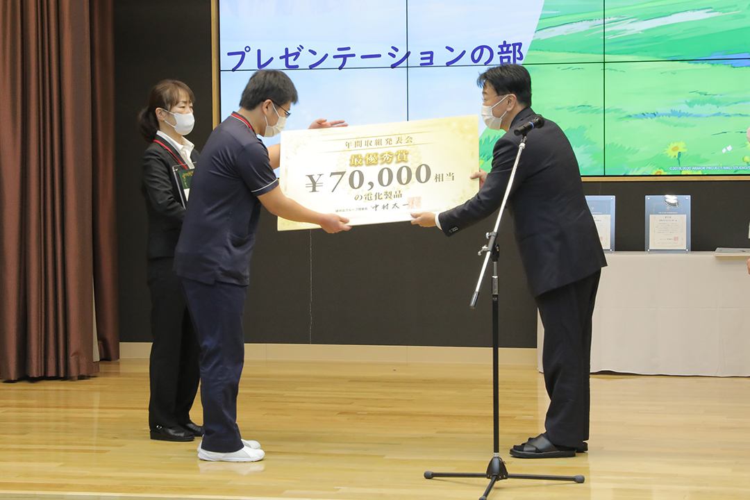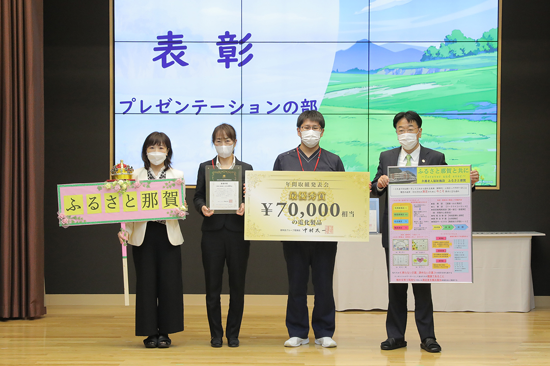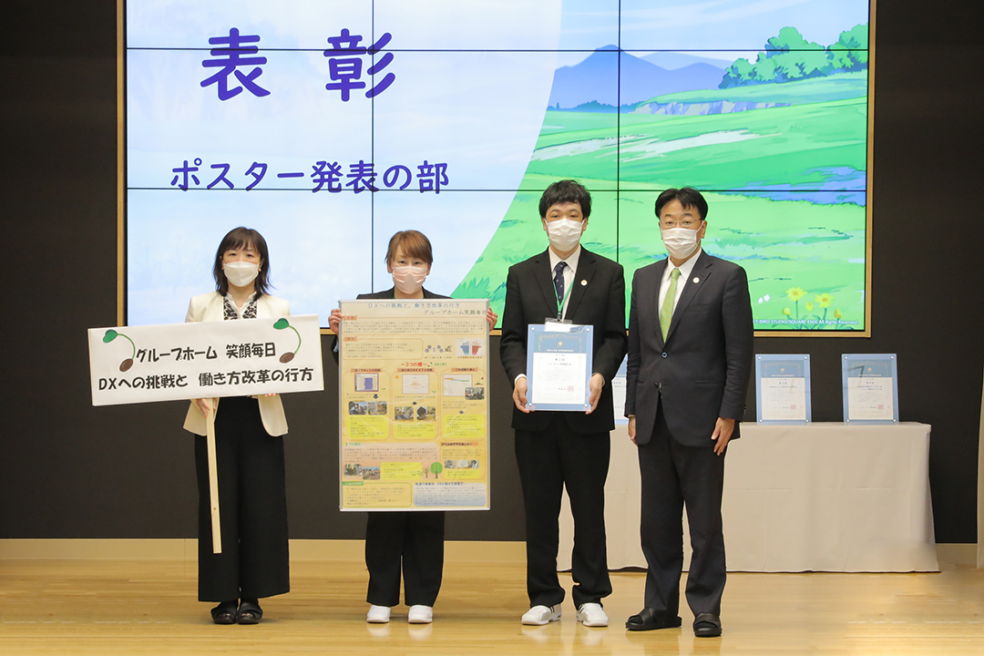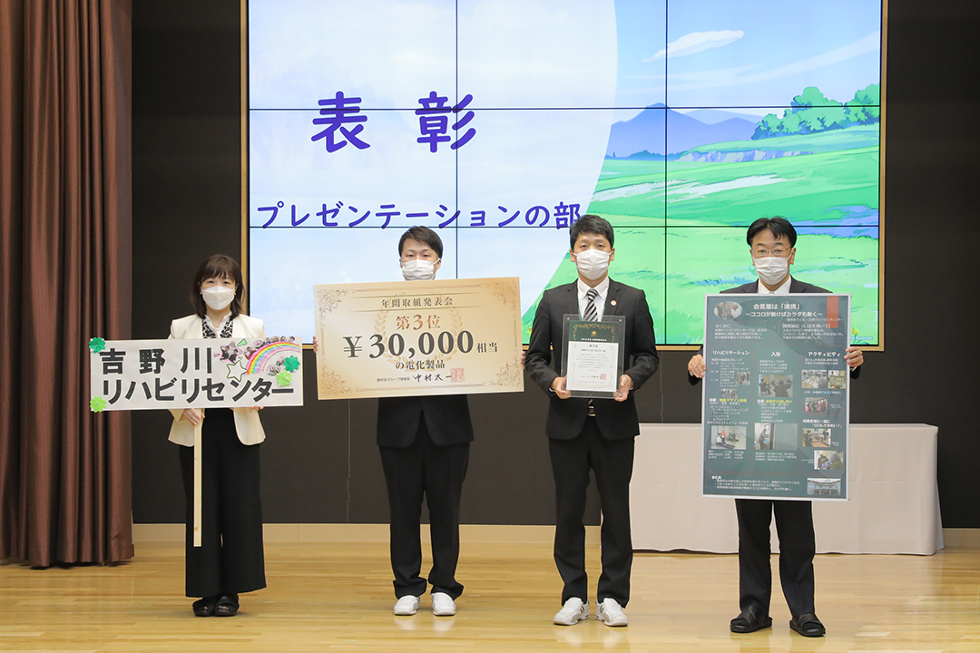 審査ののち、表彰式が行われ、受賞チームに表彰状と副賞の目録パネルが贈られました。ポスター部門受賞で、来場のなかった3施設へは経営会議で各施設長に贈られます。