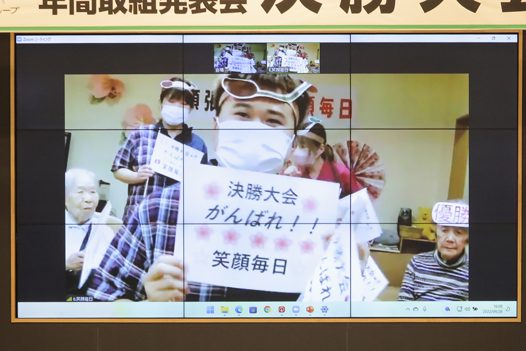 WEB配信により、施設の仲間や利用者様からの応援を受け、1年間頑張ってきた取り組みと成果がプレゼンテーションされました。どの施設もどんどんプレゼンテーションの腕を上げており、見応え聞き応えのある発表でした。
