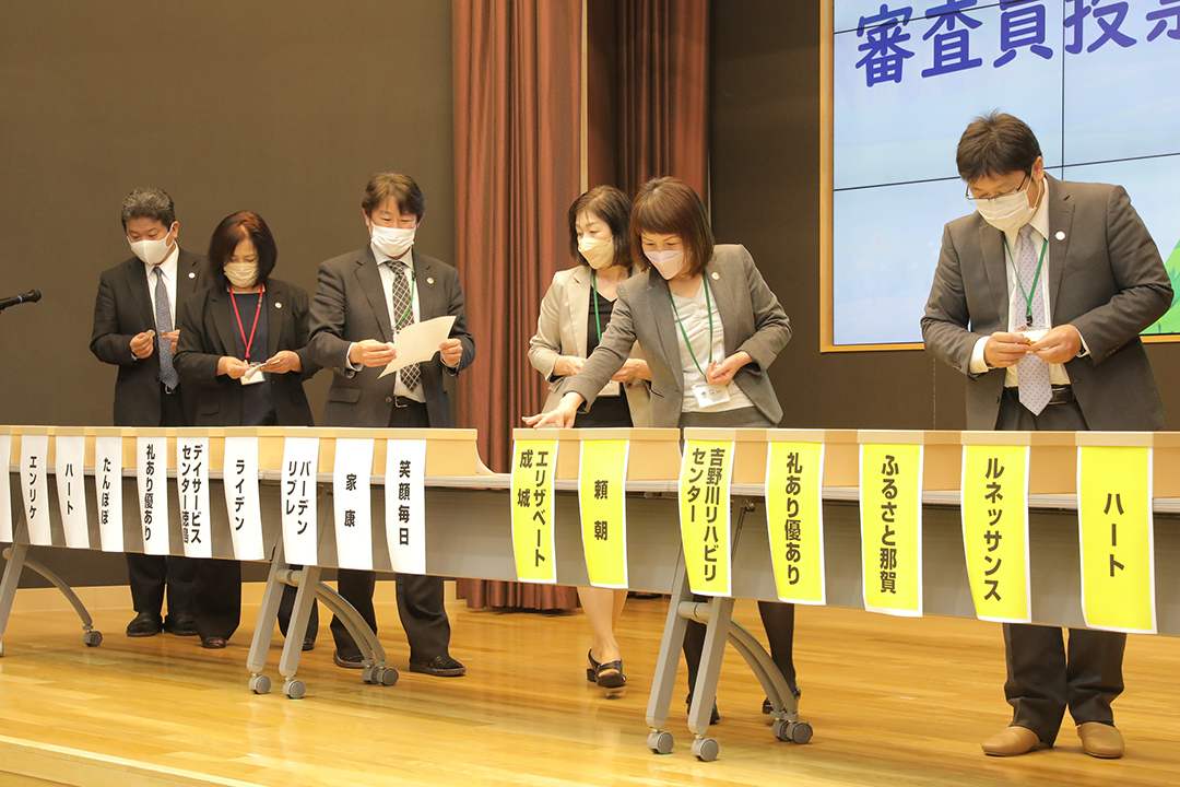 令和3年度の統一テーマは、「私たちの働き方☆再発見」。決勝進出を果たしたのは、特別養護老人ホームエリザベート成城、養護老人ホーム健祥会頼朝、吉野川リハビリセンター、グループホーム礼あり優あり、介護老人福祉施設ふるさと那賀、特別養護老人ホーム緑風会ルネッサンス、老人保健施設健祥会ハート、グループホーム笑顔毎日の8施設です。