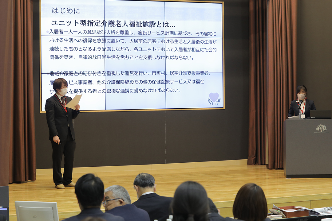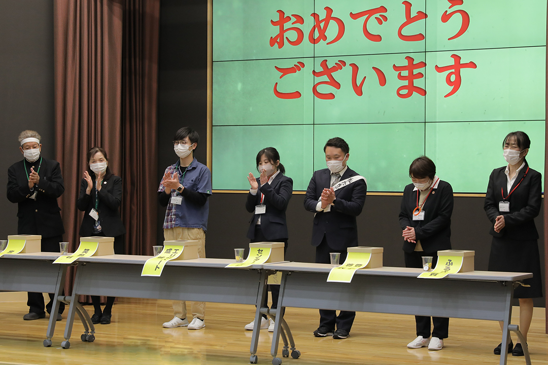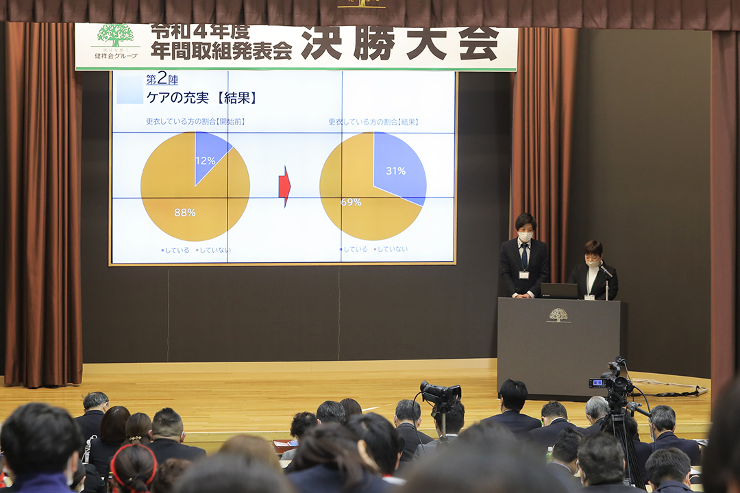 3月14日、施設種別ごとの予選を勝ち抜いた7施設が、健祥会トゥモローホールで開催された令和4年度の決勝大会に臨みました。