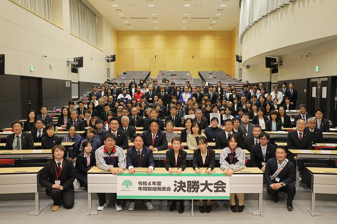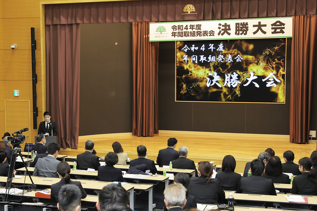 3月14日、施設種別ごとの予選を勝ち抜いた7施設が、健祥会トゥモローホールで開催された令和4年度の決勝大会に臨みました。