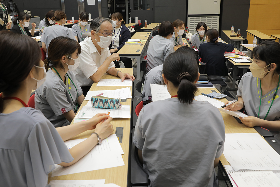 後半は、食・栄養向上委員がプレイヤーを務めてのロールプレイング。続いて全参加者によるグループワークでは、委員がファシリテーターとなって2つの事例を検討し、熱の入ったグループワークが展開されました。栄養学が専門の健祥会学園校長武田英二がアドバイザーを務め、グループワークの成果を発表し合うとともに、活発な議論が交わされました。