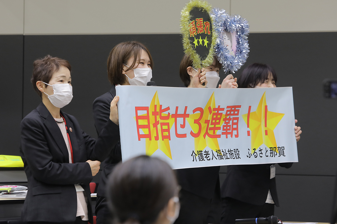 どの施設も、内容、まとめ方、プレゼンテーション、ともに素晴らしく聞き応えのある発表でした。甲乙付け難く、悩ましい審査でしたが、19人の審査員が熟慮の末、各3票を投じ、初出場の特別養護老人ホーム緑風会チロルが優勝の栄冠を射止めました。