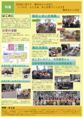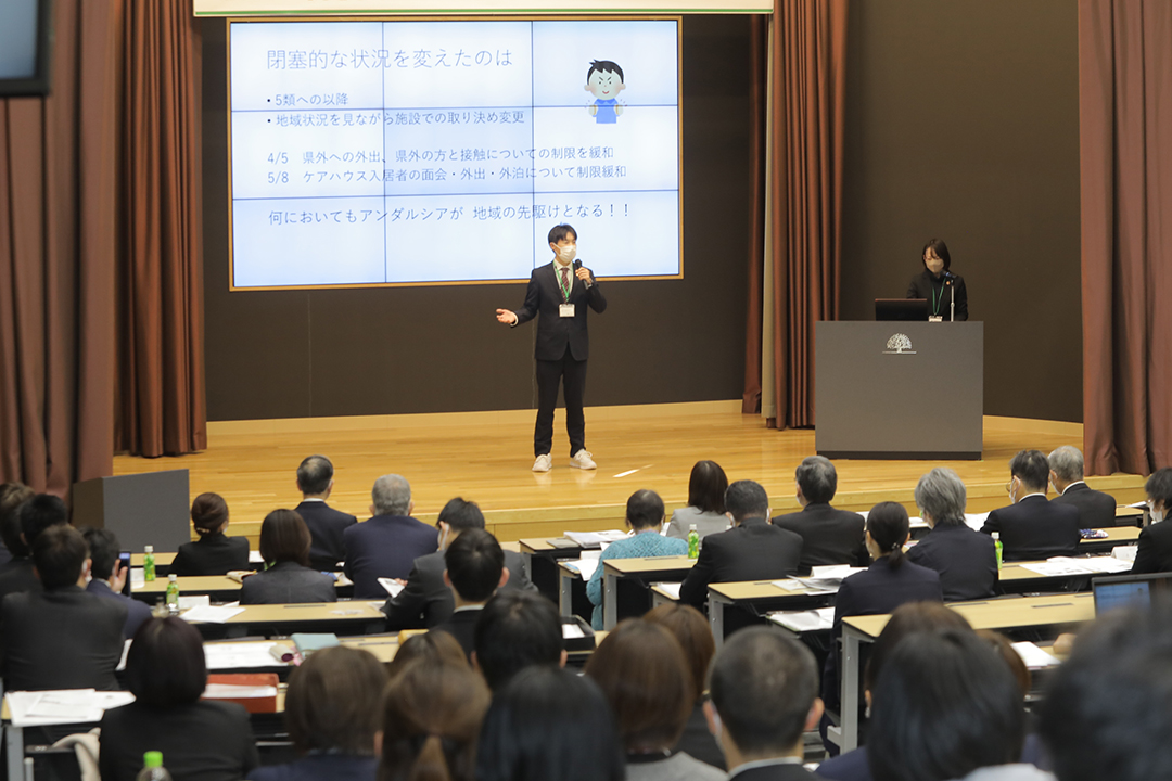 新型コロナウイルス感染症により、入居者様・利用者様にも職員にもさまざまな影響と制約がもたらされる中、工夫しながら、さまざまな機会を通じて潤いと楽しみの創造に努めてきたこと。アンダルシアが地域の先駆けとなるという強い意思のもと、イベントや外出行事、学びの場も再開していったことが、紹介された。また生産性向上プロジェクトチームを立ち上げ、3M気づきシートを活用し、ムリ・ムラ・ムダの削減による業務改革に取り組んだことが報告された。