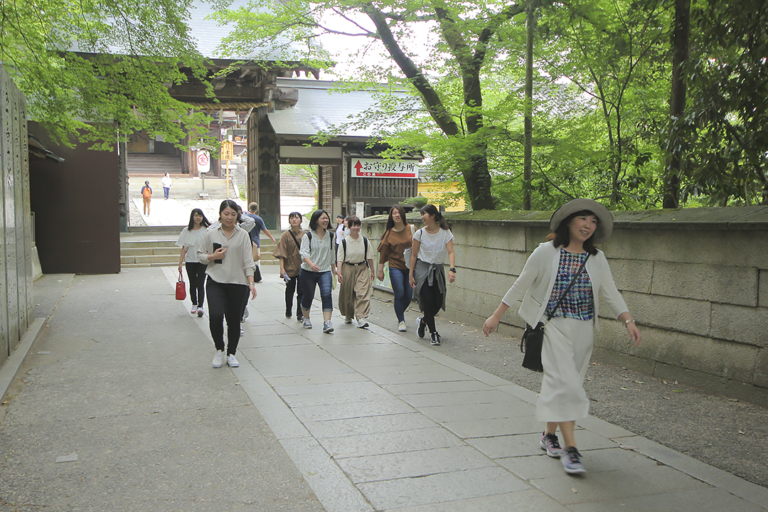 金刀比羅宮では、参加者全員が本堂までのぼり、無事参拝。ふうふう言いながらも、励ましあって1000段の階段を登りきり、仲間としての絆が深まったことを感じました。