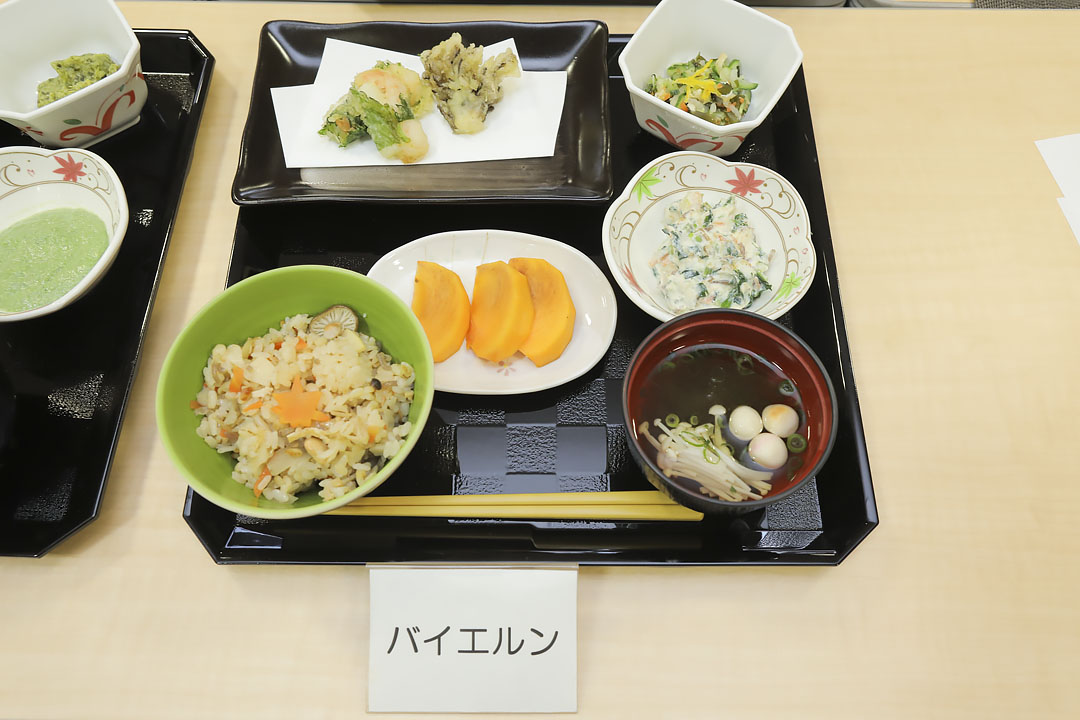 理事長中村太一を審査員長に、栄養学が専門の専門学校健祥会学園校長武田英二ほか役職員が審査員として料理を味見してまわりました。定められた材料費の中で、テーマに沿って創意工夫をこらし、腕を振るった料理の数々。厨房職員も他施設の料理を試食し、熱心に話を聞いたりアドバイスしあったりしました。